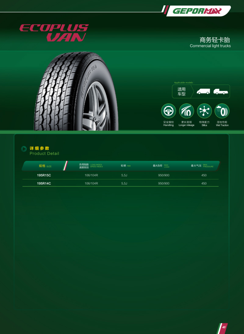 商務輕卡胎,縱向曲折寬溝,提供優(yōu)秀的操控性。強化的胎側(cè)結構,更高的安全性。