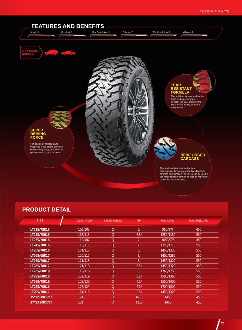 火焰型大塊花紋,是一款用于極限越野的輪胎,惡劣路況下提供超強(qiáng)的驅(qū)動力、泥地防滑性能。