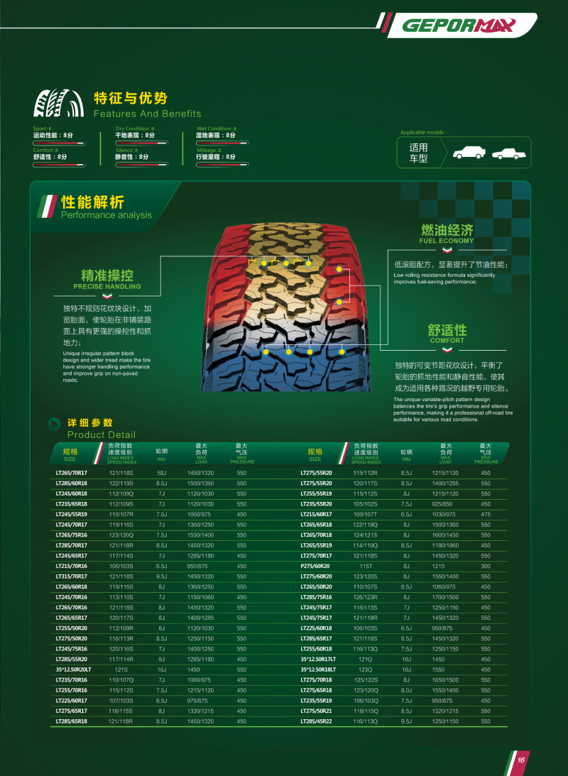 獨(dú)特花紋設(shè)計(jì),在非鋪裝路面上具有超強(qiáng)的耐用性和抓地力,是一款適用各種路況的越野專用輪胎。