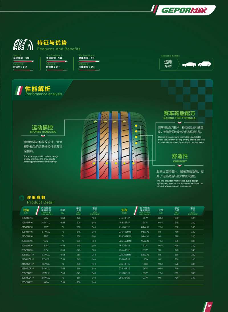 出眾的操控性能,運(yùn)動型輪胎中不可多得的兼具舒適性,駕乘更流暢、更舒適。