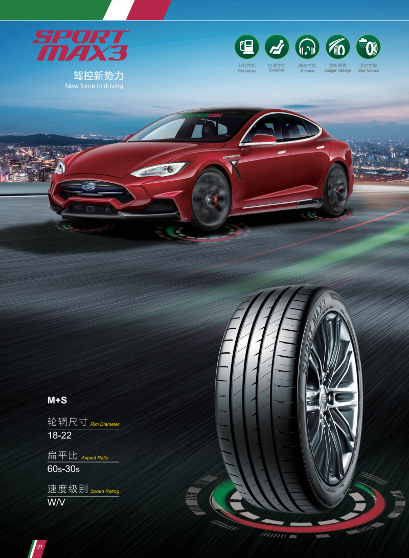 新能源汽車用EV輪胎,全新花紋設計,具有良好操控性與優(yōu)秀靜音性,低滾阻配方,讓您的新能源汽車更省電。