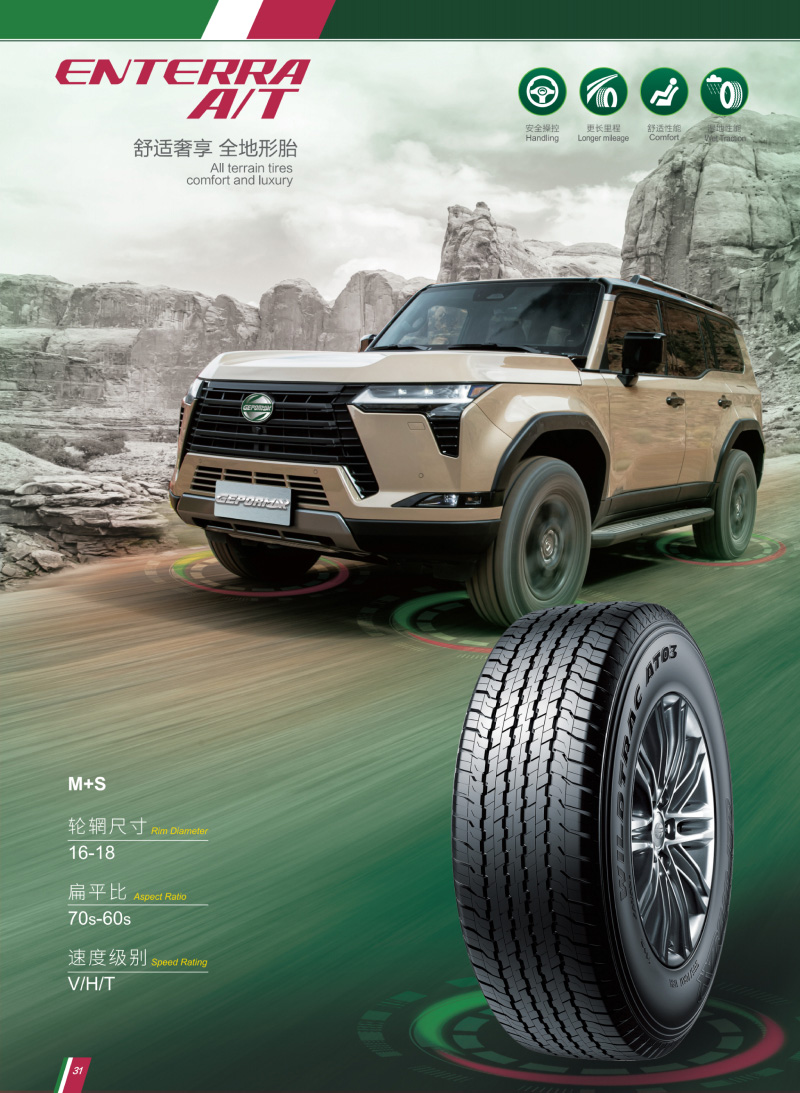 ENTERRA A/T 一款優(yōu)秀的全地形輪胎,突破性技術(shù)塑造胎面結(jié)構(gòu),對各自路況具有良好的適應(yīng)能力。